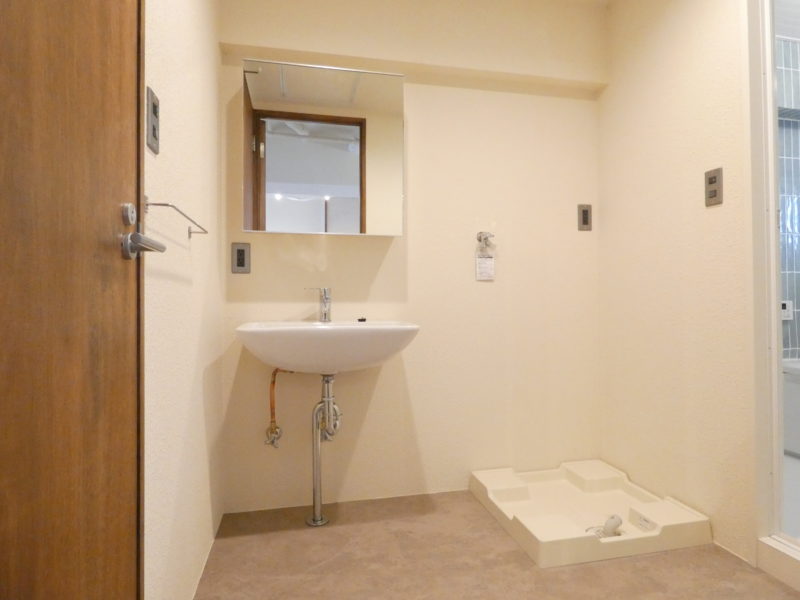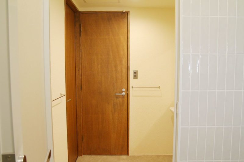 洗面や脱衣スペースも、塗り壁と木の建具でやわらかくまとめてあり、朝の支度の時間もすこしだけ整う気がします。