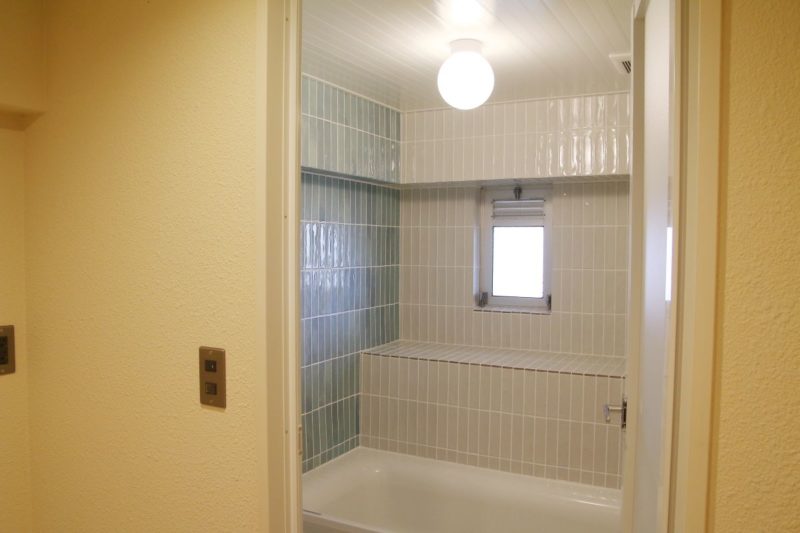 浴室は既製のユニットではなく、ハーフユニットでタイル張りの造作。