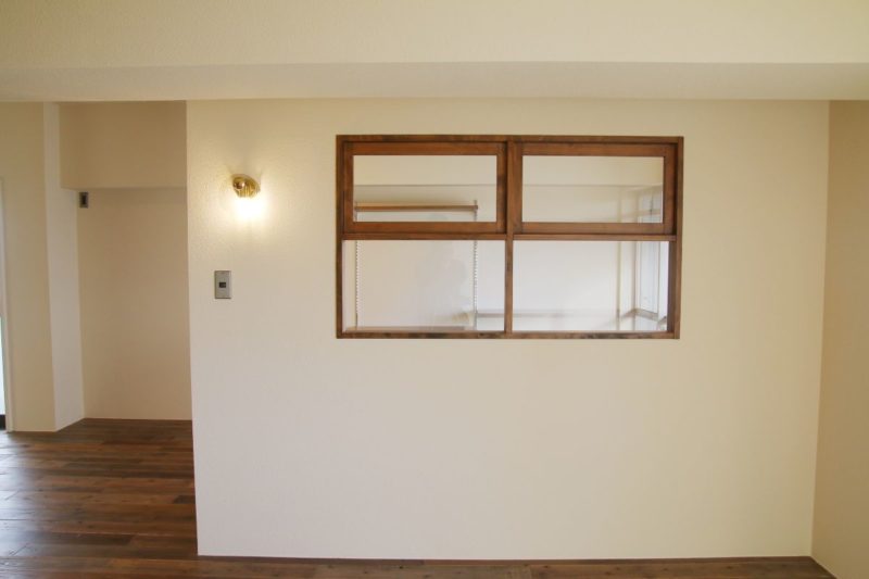 LDKには室内窓があり、光と気配だけがやわらかく行き来します。